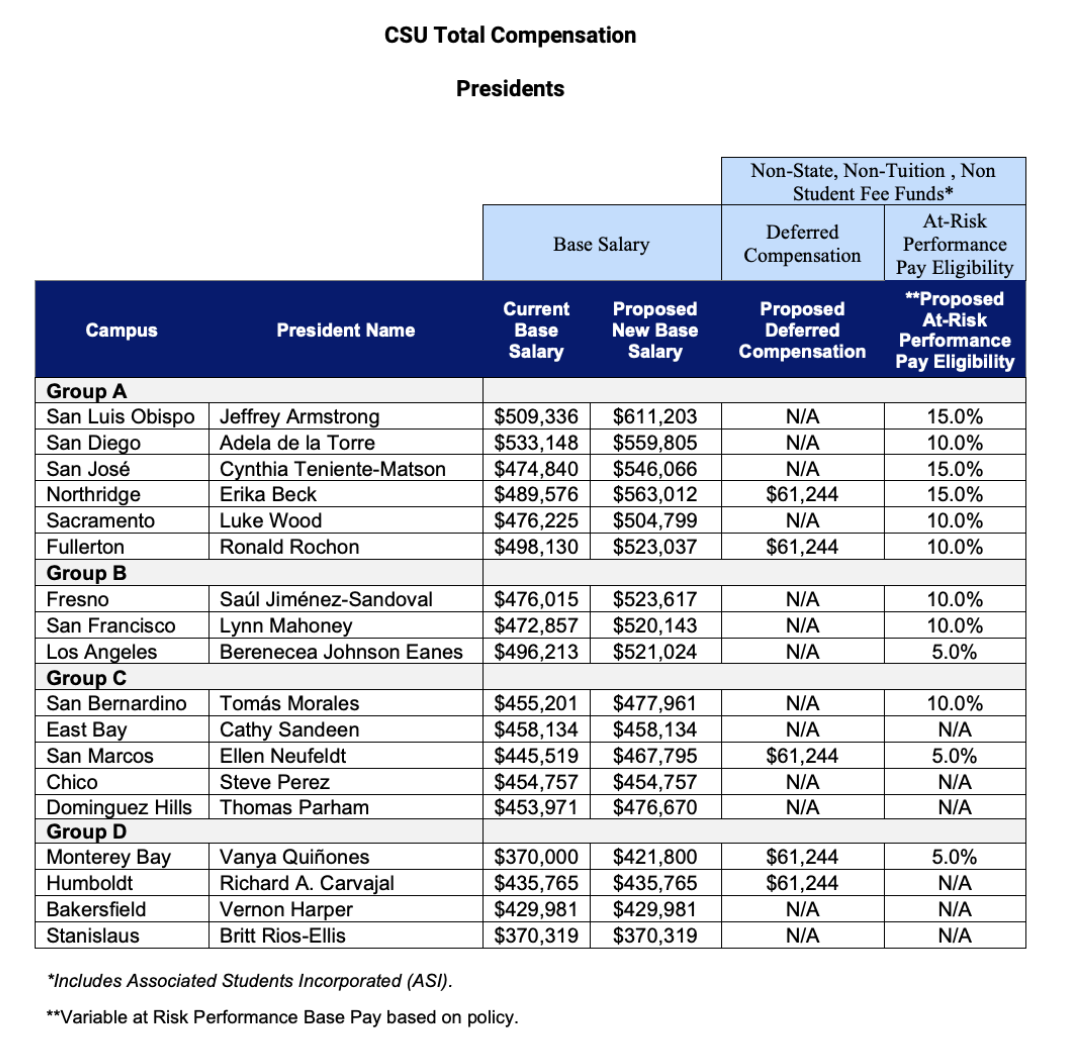 Screen Shot 2025-11-19 at 4.38.37 PM The amended compensation plan for university presidents. Credit: Courtesy of Cal State Board of Trustees agenda packet