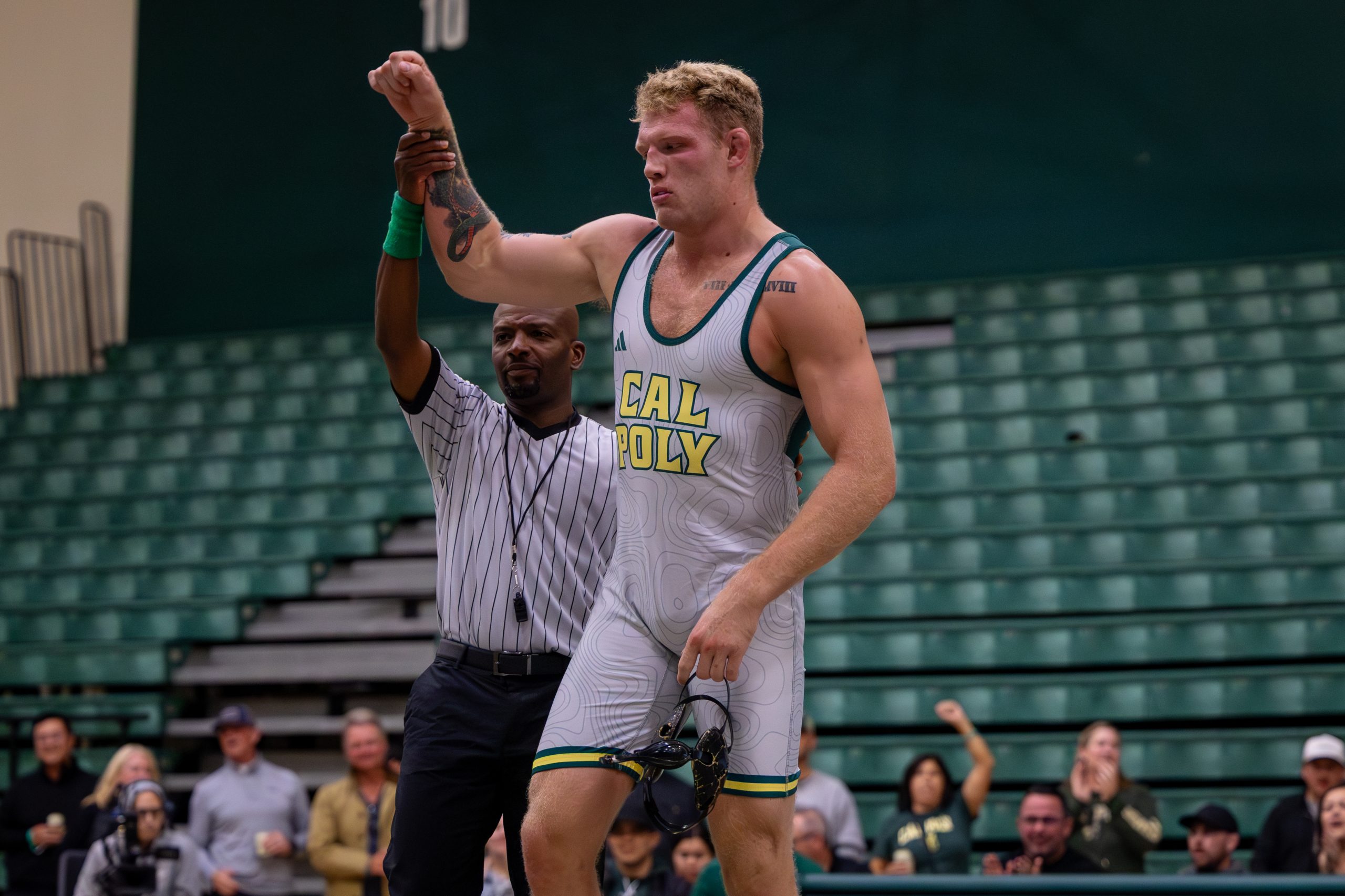 Last year, Trevor Tinker took home the Pac-12 heavyweight championship, the only Cal Poly Wrestler to win an individual championship in 2025. Credit: Lloyd Esola / Mustang News
