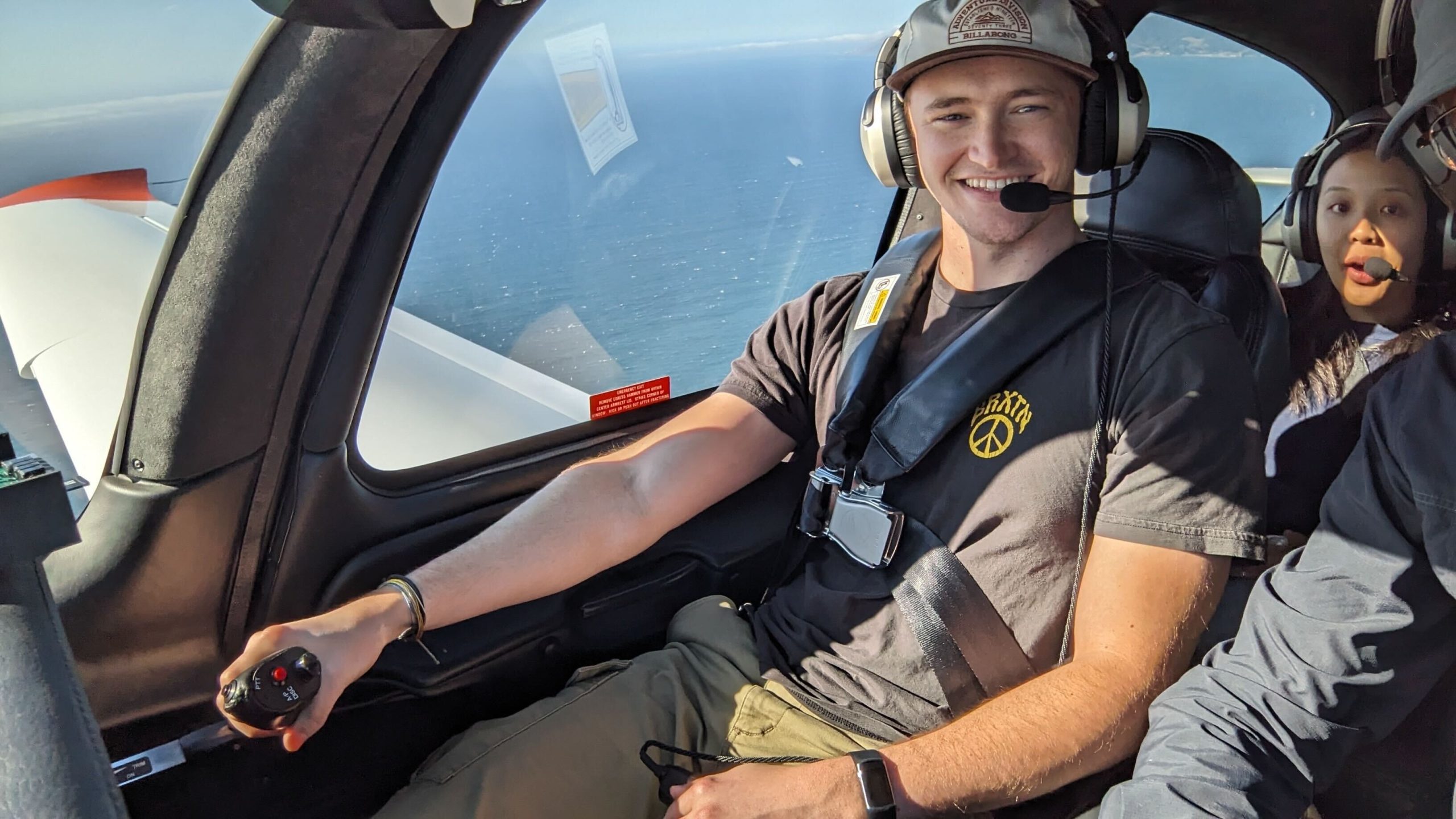 Harrison in a plane.