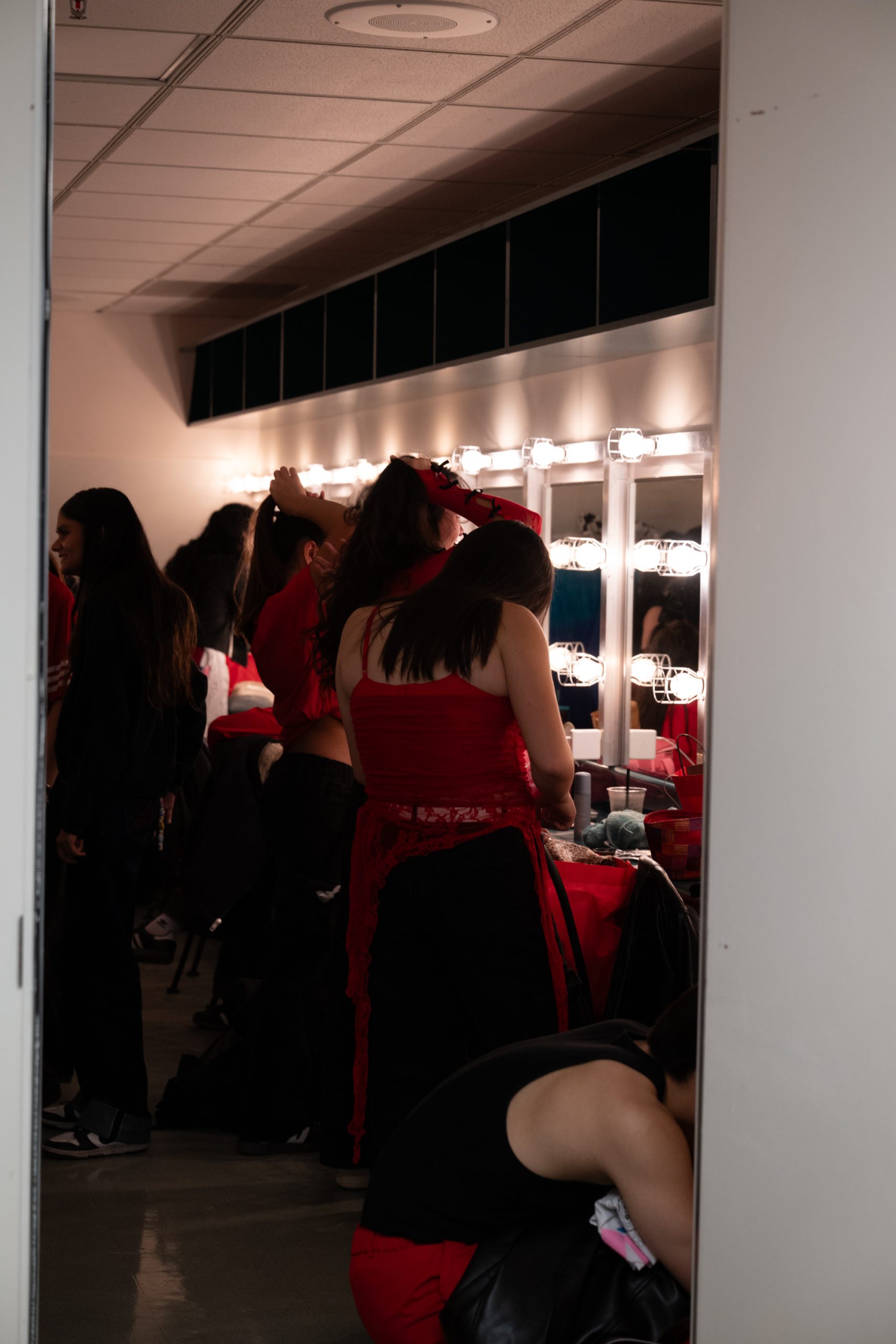 Quiet hums, flashes of digital cameras and quick footwork made backstage as alive as onstage. Dancers arrived at the Performing Arts Center early the morning of the show to get ready in the green rooms. Mirrors lined the walls as performers touched up their braids, hit a last few stretches and shared excited giggles. They were almost ready to light up the stage.