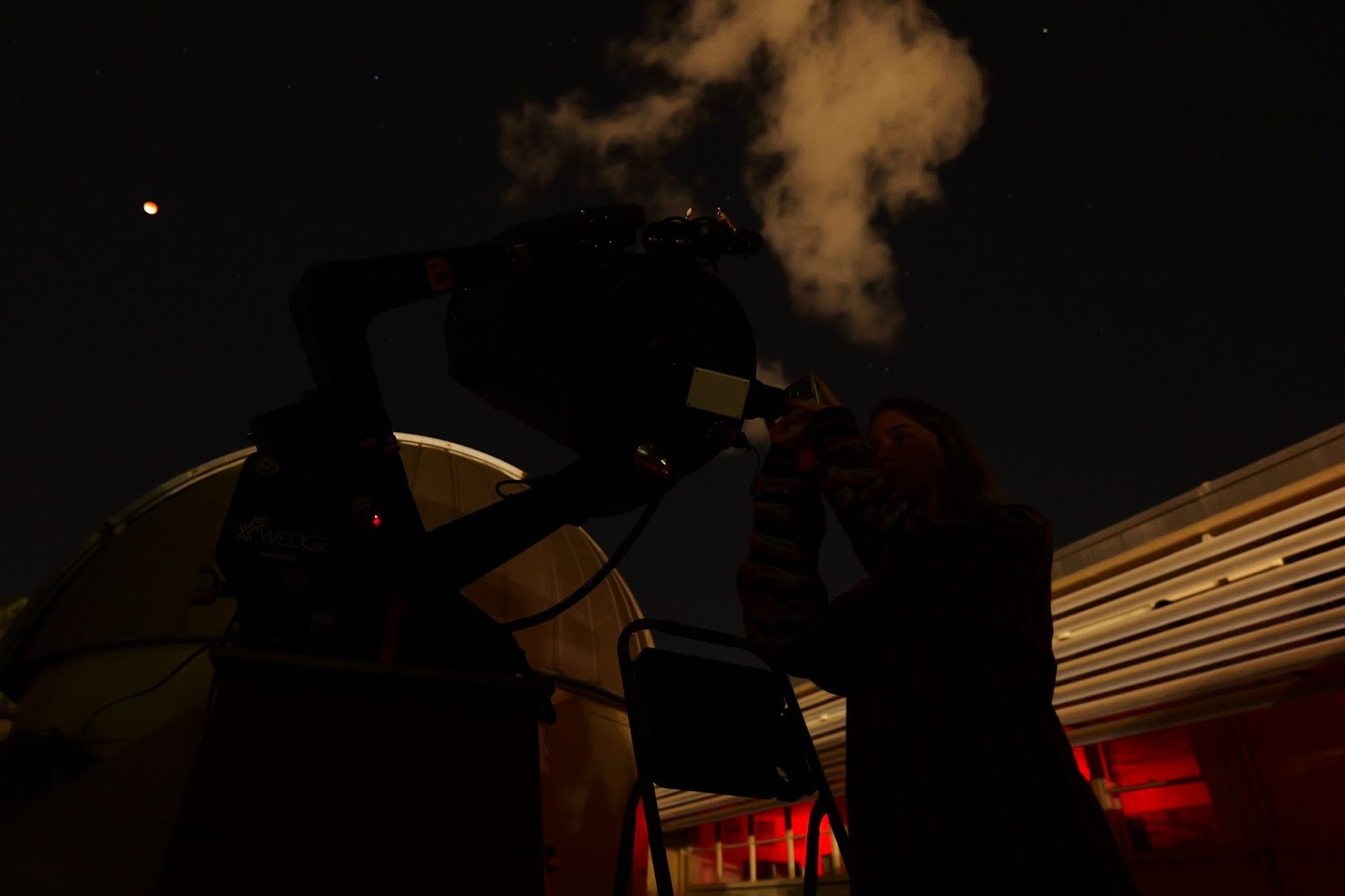 An observer takes a photo of the eclipse through the telescope lens at the Cal Poly Observatory. Credit: Henry Miller / Mustang News